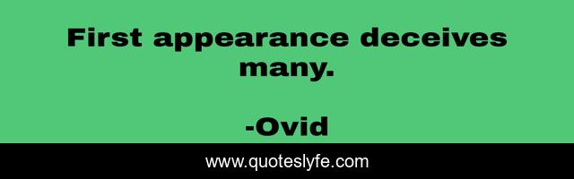 This page presents the quote "First appearance deceives many.". Author of this quote is Ovid. This quote is about many, appearance, first,.
