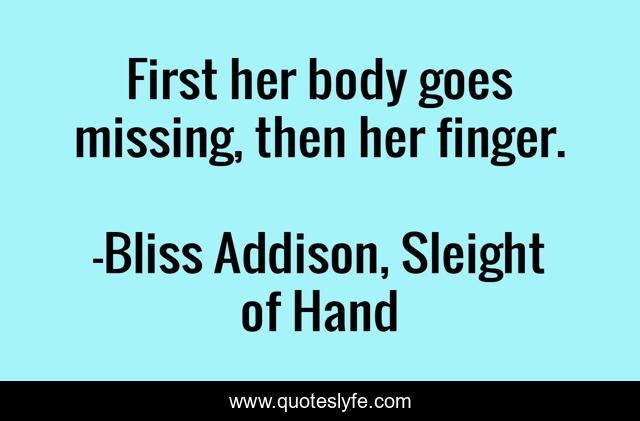 "Bliss Addison, Sleight of Hand Quotes." Quoteslyfe.com, 2025. Mon. 08 Dec. 2025. <https://www.quoteslyfe.com/quote/First-her-body-goes-missing-then-her-149664>.