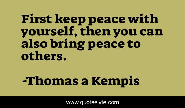 This page presents the quote "First keep peace with yourself, then you can also bring peace to others.". Author of this quote is Thomas a Kempis. This quote is about bring, yourself,.