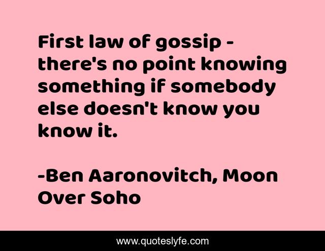 "Ben Aaronovitch, Moon Over Soho Quotes." Quoteslyfe.com, 2025. Fri. 05 Dec. 2025. <https://www.quoteslyfe.com/quote/First-law-of-gossip-there-s-no-281269>.