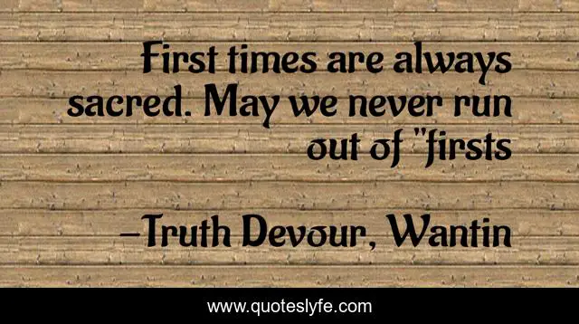 "Truth Devour, Wantin Quotes." Quoteslyfe.com, 2025. Sat. 06 Dec. 2025. <https://www.quoteslyfe.com/quote/First-times-are-always-sacred-May-we-188778>.