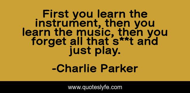 This page presents the quote "First you learn the instrument, then you learn the music, then you forget all that s**t and just play.". Author of this quote is Charlie Parker. This quote is about instrument, music, learning,.