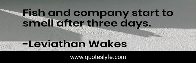 This page presents the quote "Fish and company start to smell after three days.". Author of this quote is Leviathan Wakes. .