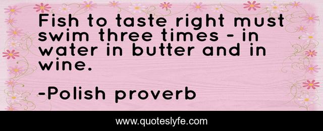 This page presents the quote "Fish to taste right must swim three times - in water in butter and in wine.". Author of this quote is Polish proverb. .