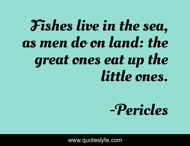 This page presents the quote "Fishes live in the sea, as men do on land: the great ones eat up the little ones.". Author of this quote is Pericles. This quote is about great, live, sea,.
