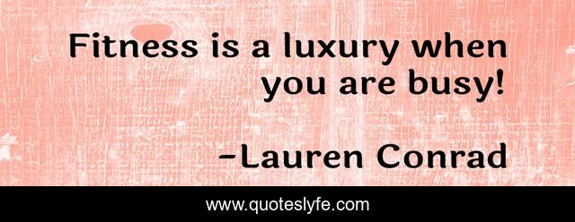 This page presents the quote "Fitness is a luxury when you are busy!". Author of this quote is Lauren Conrad. This quote is about busy, luxury,.