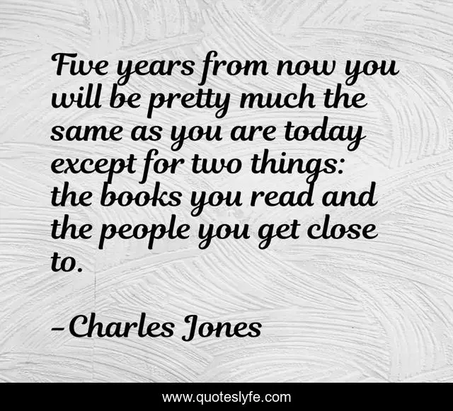 This page presents the quote "Five years from now you will be pretty much the same as you are today except for two things: the books you read and the people you get close to.". Author of this quote is Charles Jones. .