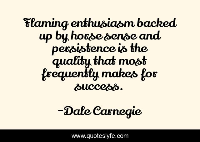 This page presents the quote "Flaming enthusiasm backed up by horse sense and persistence is the quality that most frequently makes for success.". Author of this quote is Dale Carnegie. .