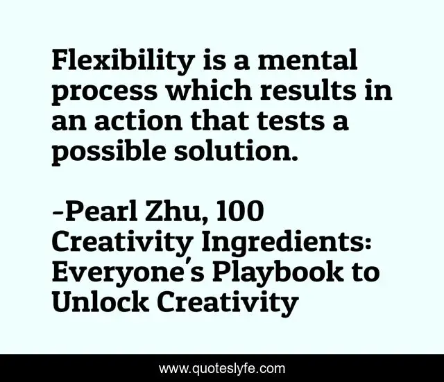 This page presents the quote "Flexibility is a mental process which results in an action that tests a possible solution.". Author of this quote is Pearl Zhu, 100 Creativity Ingredients: Everyone's Playbook to Unlock Creativity. This quote is about flexibility, innovation,.