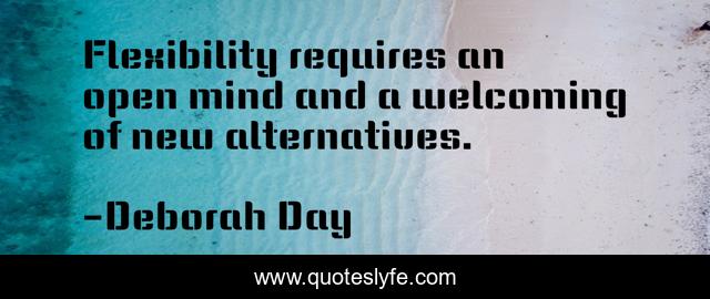 This page presents the quote "Flexibility requires an open mind and a welcoming of new alternatives.". Author of this quote is Deborah Day. This quote is about open-mindedness, flexable, open-mind, change, positive-thinking,.