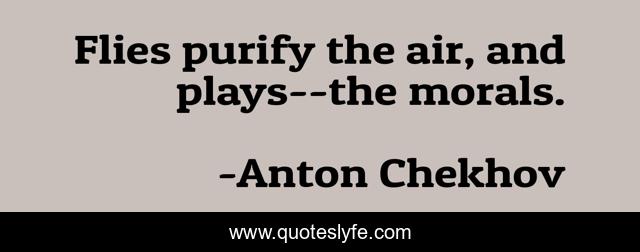 This page presents the quote "Flies purify the air, and plays--the morals.". Author of this quote is Anton Chekhov. This quote is about flies, morals,.