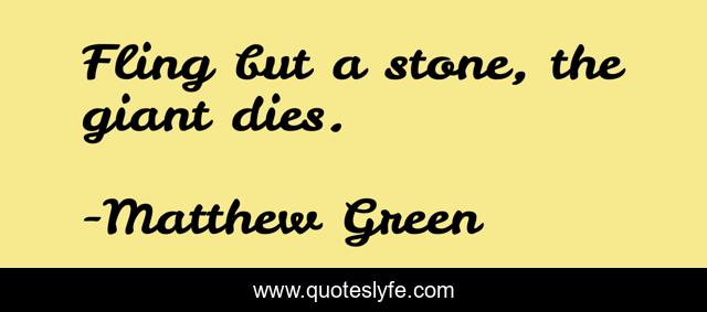 This page presents the quote "Fling but a stone, the giant dies.". Author of this quote is Matthew Green. This quote is about stone, giant, fling,.