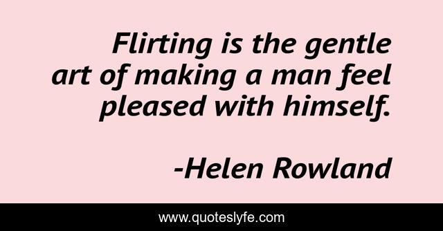 This page presents the quote "Flirting is the gentle art of making a man feel pleased with himself.". Author of this quote is Helen Rowland. This quote is about feel, gentle, man,.