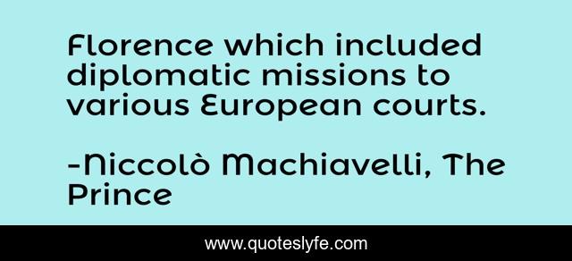 "Niccolò Machiavelli, The Prince Quotes." Quoteslyfe.com, 2025. Sat. 06 Dec. 2025. <https://www.quoteslyfe.com/quote/Florence-which-included-diplomatic-missions-to-various-218844>.