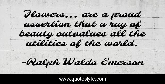 This page presents the quote "Flowers... are a proud assertion that a ray of beauty outvalues all the utilities of the world.". Author of this quote is Ralph Waldo Emerson. This quote is about world, flowers, proud,.