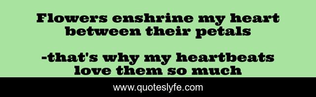 This page presents the quote "Flowers enshrine my heart between their petals". Author of this quote is that's why my heartbeats love them so much. .