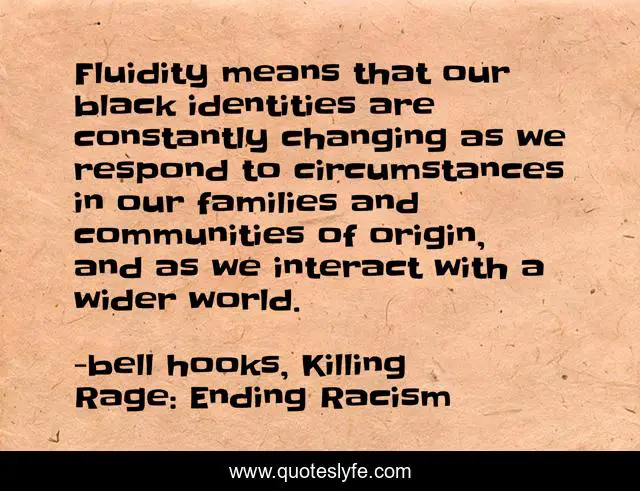 "bell hooks, Killing Rage: Ending Racism Quotes." Quoteslyfe.com, 2025. Fri. 05 Dec. 2025. <https://www.quoteslyfe.com/quote/Fluidity-means-that-our-black-identities-are-171225>.