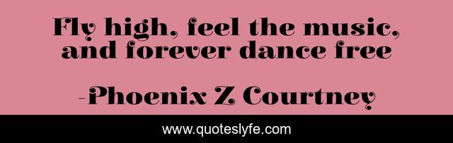 This page presents the quote "Fly high, feel the music, and forever dance free". Author of this quote is Phoenix Z Courtney. .