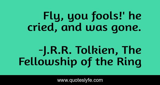 This page presents the quote "Fly, you fools!' he cried, and was gone.". Author of this quote is J.R.R. Tolkien, The Fellowship of the Ring. .