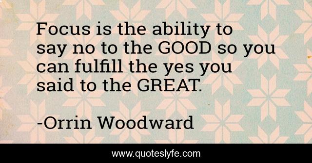 This page presents the quote "Focus is the ability to say no to the GOOD so you can fulfill the yes you said to the GREAT.". Author of this quote is Orrin Woodward. .
