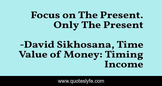 "David Sikhosana, Time Value of Money: Timing Income Quotes." Quoteslyfe.com, 2025. Fri. 05 Dec. 2025. <https://www.quoteslyfe.com/quote/Focus-on-The-Present-Only-The-Present-33266>.