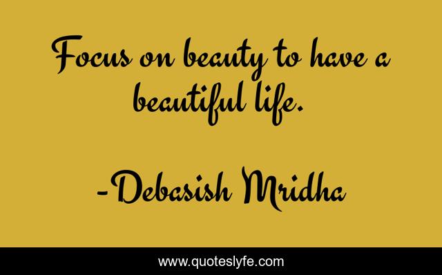 This page presents the quote "Focus on beauty to have a beautiful life.". Author of this quote is Debasish Mridha. This quote is about beauty, philosophy, debasish-mridha, quotes, inspirational, to-have-a-beautiful-life, enthusiasm, debasish-mridha-m-d,.