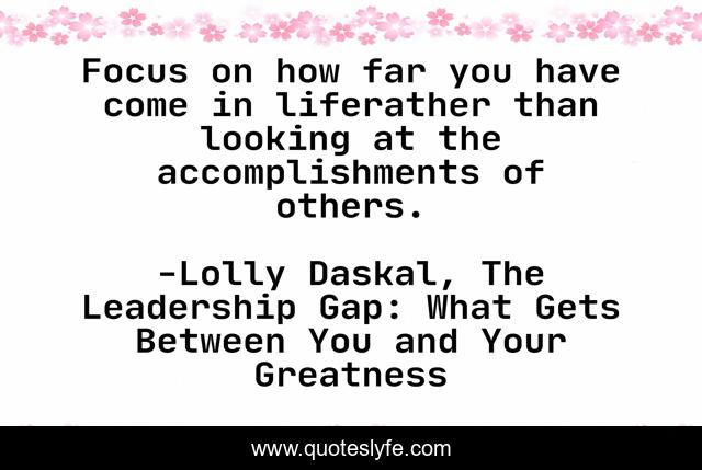 "Lolly Daskal, The Leadership Gap: What Gets Between You and Your Greatness Quotes." Quoteslyfe.com, 2025. Sat. 06 Dec. 2025. <https://www.quoteslyfe.com/quote/Focus-on-how-far-you-have-come-15699>.