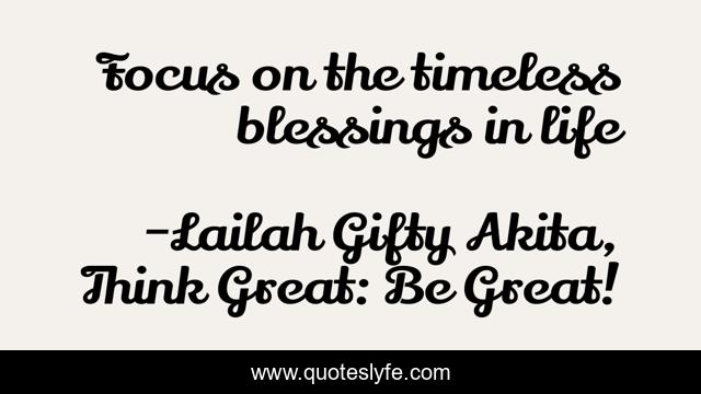 "Lailah Gifty Akita, Think Great: Be Great! Quotes." Quoteslyfe.com, 2025. Mon. 08 Dec. 2025. <https://www.quoteslyfe.com/quote/Focus-on-the-timeless-blessings-in-life-78505>.