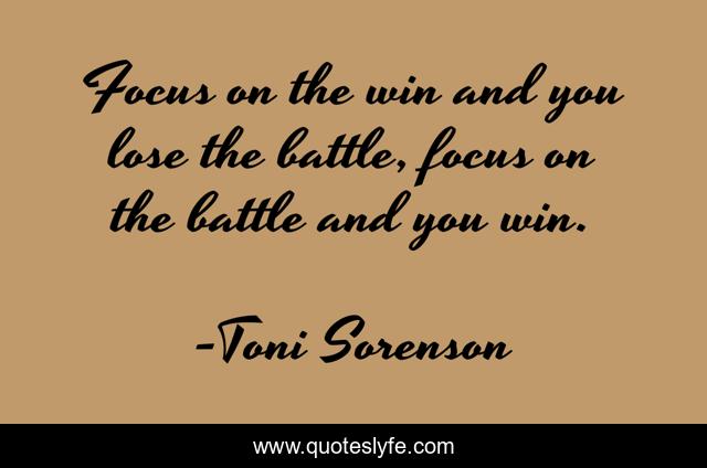 This page presents the quote "Focus on the win and you lose the battle, focus on the battle and you win.". Author of this quote is Toni Sorenson. This quote is about life, success, win, wisdom, health, strategic-thinking, fitness, battle, healthy-habits,.