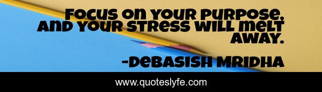 This page presents the quote "Focus on your purpose, and your stress will melt away.". Author of this quote is Debasish Mridha. This quote is about stress, how-to-deal-with-stress, philosophy, debasish-mridha, focus-on-your-purpose, quotes, purpose, inspirational, enthusiasm,.