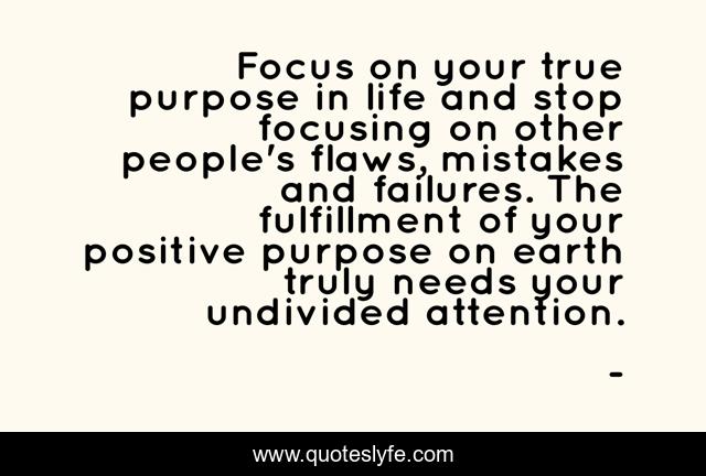 Focus on your true purpose in life and stop focusing on other people's flaws, mistakes and failures. The fulfillment of your positive purpose on earth truly needs your undivided attention.