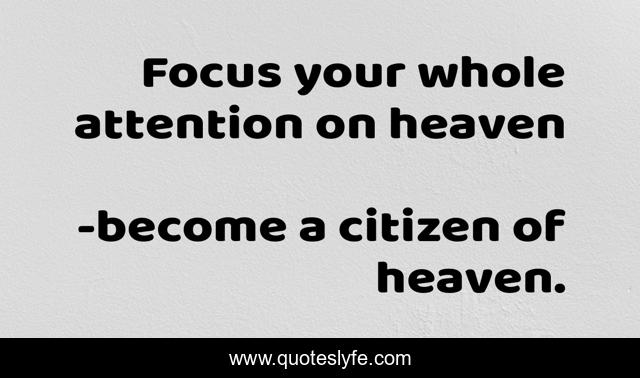 "become a citizen of heaven. Quotes." Quoteslyfe.com, 2025. Fri. 05 Dec. 2025. <https://www.quoteslyfe.com/quote/Focus-your-whole-attention-on-heaven-183571>.