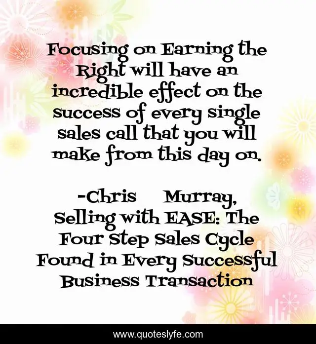 "Chris Murray, Selling with EASE: The Four Step Sales Cycle Found in Every Successful Business Transaction Quotes." Quoteslyfe.com, 2025. Mon. 17 Nov. 2025. <https://www.quoteslyfe.com/quote/Focusing-on-Earning-the-Right-will-have-128171>.