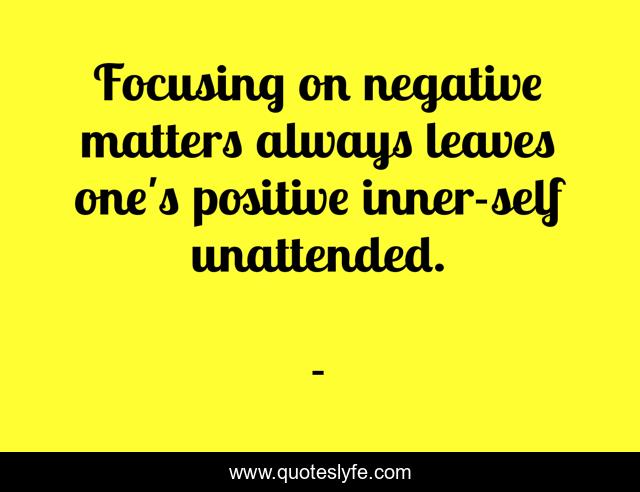 This page presents the quote "Focusing on negative matters always leaves one's positive inner-self unattended.". Author of this quote is . This quote is about edmond-mbiaka, one-s-inner-self, negative-matters, positive-inner-self, focusing-on-negative-things,.