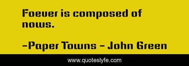 "Paper Towns - John Green Quotes." Quoteslyfe.com, 2025. Fri. 05 Dec. 2025. <https://www.quoteslyfe.com/quote/Foever-is-composed-of-nows-248511>.