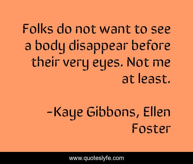 This page presents the quote "Folks do not want to see a body disappear before their very eyes. Not me at least.". Author of this quote is Kaye Gibbons, Ellen Foster. This quote is about body, disappear,.