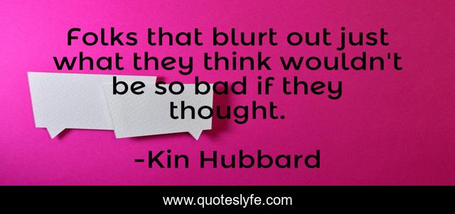 This page presents the quote "Folks that blurt out just what they think wouldn't be so bad if they thought.". Author of this quote is Kin Hubbard. This quote is about thinking, thought,.