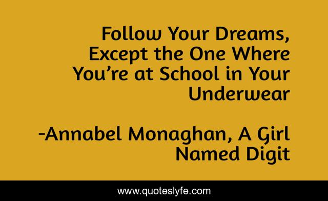This page presents the quote "Follow Your Dreams, Except the One Where You’re at School in Your Underwear". Author of this quote is Annabel Monaghan, A Girl Named Digit. .