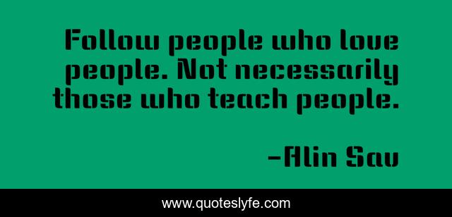 This page presents the quote "Follow people who love people. Not necessarily those who teach people.". Author of this quote is Alin Sav. .