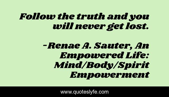 "Renae A. Sauter, An Empowered Life: Mind/Body/Spirit Empowerment Quotes." Quoteslyfe.com, 2025. Fri. 05 Dec. 2025. <https://www.quoteslyfe.com/quote/Follow-the-truth-and-you-will-never-103397>.