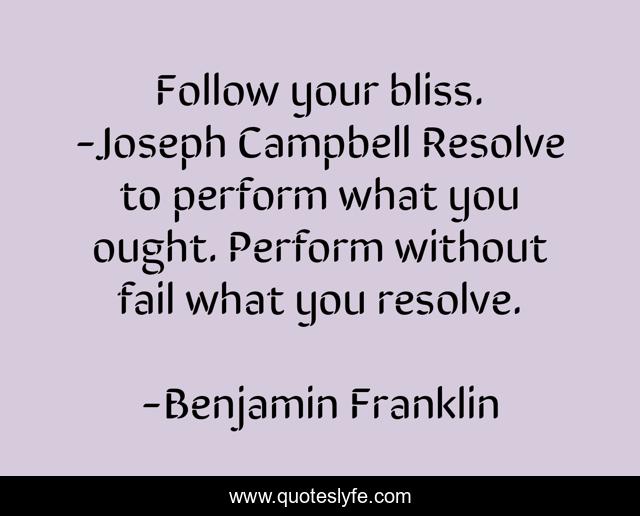 "Benjamin Franklin Quotes." Quoteslyfe.com, 2025. Mon. 08 Dec. 2025. <https://www.quoteslyfe.com/quote/Follow-your-bliss-Joseph-Campbell-Resolve-to-271880>.