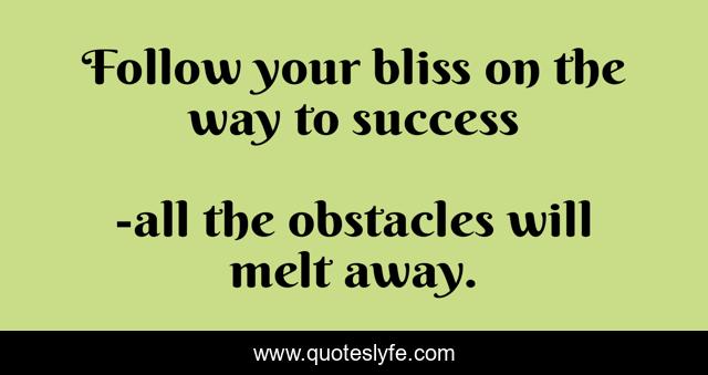 This page presents the quote "Follow your bliss on the way to success". Author of this quote is all the obstacles will melt away.. .