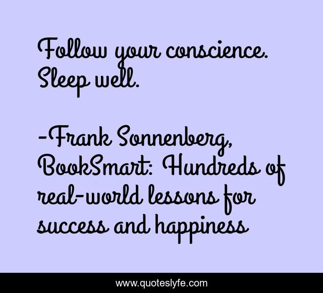 "Frank Sonnenberg, BookSmart: Hundreds of real-world lessons for success and happiness Quotes." Quoteslyfe.com, 2025. Fri. 05 Dec. 2025. <https://www.quoteslyfe.com/quote/Follow-your-conscience-Sleep-well-230930>.