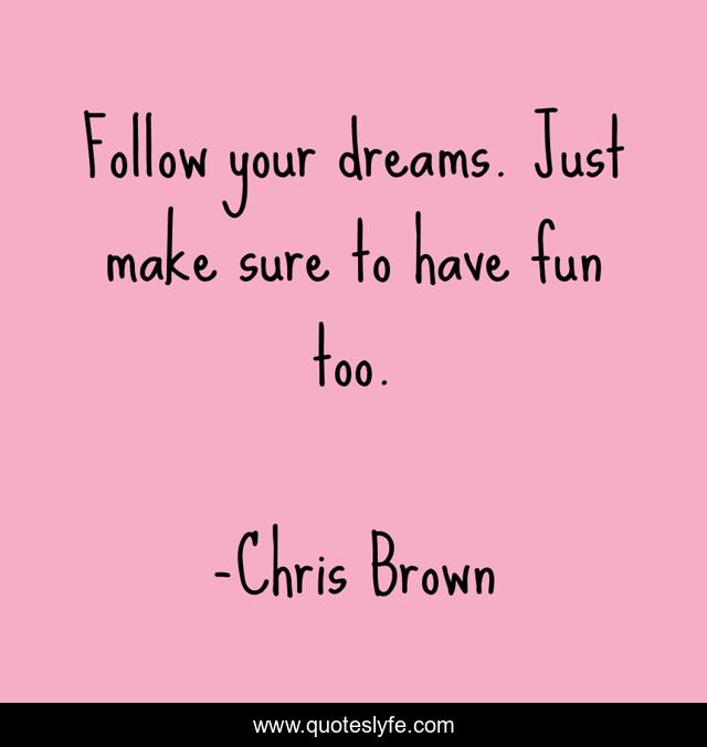 This page presents the quote "Follow your dreams. Just make sure to have fun too.". Author of this quote is Chris Brown. This quote is about your dreams, fun, have fun,.