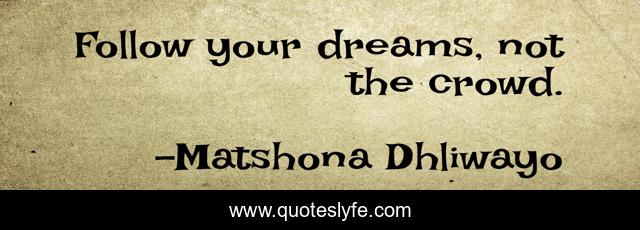"Matshona Dhliwayo Quotes." Quoteslyfe.com, 2025. Sat. 06 Dec. 2025. <https://www.quoteslyfe.com/quote/Follow-your-dreams-not-the-crowd-109110>.