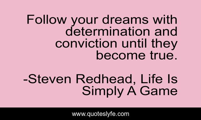 "Steven Redhead, Life Is Simply A Game Quotes." Quoteslyfe.com, 2025. Fri. 05 Dec. 2025. <https://www.quoteslyfe.com/quote/Follow-your-dreams-with-determination-and-conviction-188159>.
