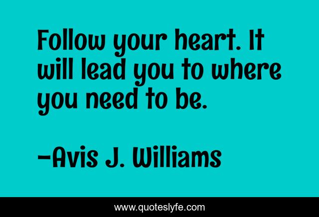 "Avis J. Williams Quotes." Quoteslyfe.com, 2025. Tue. 30 Dec. 2025. <https://www.quoteslyfe.com/quote/Follow-your-heart-It-will-lead-you-78036>.