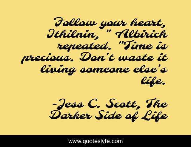 "Jess C. Scott, The Darker Side of Life Quotes." Quoteslyfe.com, 2025. Fri. 05 Dec. 2025. <https://www.quoteslyfe.com/quote/Follow-your-heart-Ithilnin-Albirich-repeated-Time-12980>.