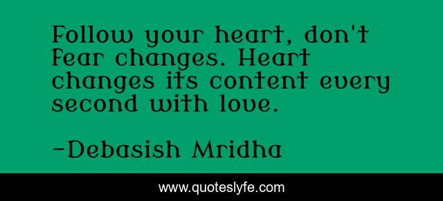 "Debasish Mridha Quotes." Quoteslyfe.com, 2025. Sun. 07 Dec. 2025. <https://www.quoteslyfe.com/quote/Follow-your-heart-don-t-fear-changes-69058>.