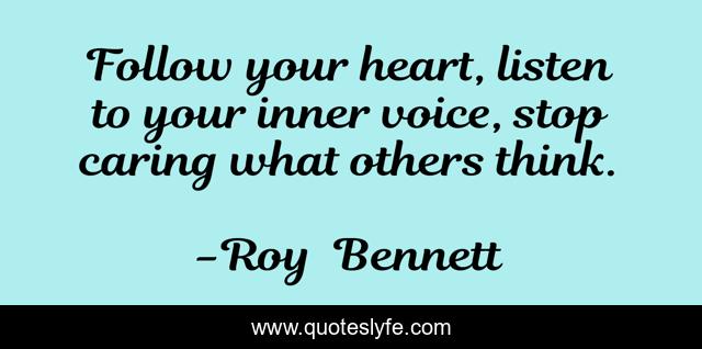 This page presents the quote "Follow your heart, listen to your inner voice, stop caring what others think.". Author of this quote is Roy Bennett. This quote is about heart, inner-voice, wise, inspirational, living, be-yourself, life, spiritual, wisdom,.